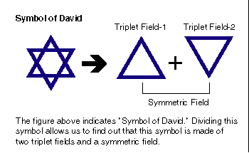 Symbol of David, which is famous for the mark of Judaism, is made of two kinds of field sets: a symmetric field and two triplet fields. That is, in this symbol, a symmetric field consists of two triplet fields. This symbol can also be seen on a shinto shrine archway in a Japanese shrine: Ise Shrines, and Japanese people calls it "Kagome" in Japanese. These facts suggest that this symbol has very-important meaning for nature. |