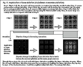 When the stomach with initial distortion strongly decreases the momentum, it amplifies the initial distortion. When the stomach decreases the momentum and reduces the energy density, it becomes atrophied to regain the energy density. However, when the stomach continues decreasing the momentum and in addition cannot become atrophied anymore, it starts amplifying initial distortion already caused in the stomach wall. Importantly, in this process, the stomach wall amplifies initial distortion stepwise, because metabolism in an organ is controlled by fractalism. I call this amplified initial distortion Secondary Distortion and distinguish it from Initial Distortion.