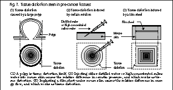 Tissue distortion can clearly be observed in several kinds of pre-cancer tissues. For example, the following three phenomena are indeed useful for us to notice the existence of tissue distortion in a pre-cancer tissue. The first is a phenomenon that a large polyp often causes cancer at the peak. The second is that injecting either distilled water or high-concentrated saline water into mouse skin enables us to induce cancer. The third is that implanting a film sheet under mouse skin also enables us to induce cancer. Analyzing theoretically these three phenomena allows us to point out that a tissue with tissue distortion often causes cancer.
