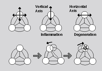 (In the figures above, when a cell moves along the vertical axis, it causes inflammation. When a cell moves along the horizontal axis, it causes degeneration.) |