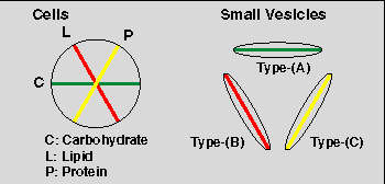 Next, let us consider what special characteristic small vesicles have. Small vesicles, which can be observed in a degenerative tissue and in a cell, can be considered to have a special characteristic a normal cell does not have. Small vesicles are usually made from one of the basic components of a cell such as lipid, protein, carbohydrate and so on. Because of this structure, small vesicles can be considered to have extreme physical characters compared with a cell. In other words, we can say that small vesicles have extreme characters compared with cells. Thus, when a cell manufactures small vesicles in it, it can change its original cellular character into new one. |