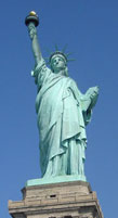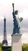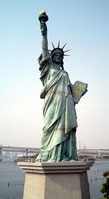 The first step of symmetric thinking is to find out the symmetrical relationship between right and left. Although a right and a left side appear to be only opposite ones, they differ in meaning. To know the meaning, let us see the Goddess of Liberty. The picture below left is the Goddess of Liberty in Tokyo; that below middle is the Goddess of Liberty in Paris; that below right is the Goddess of Liberty in New York.