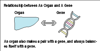 Furthermore, using symmetrical thinking about opposite mechanisms also enables us to recognize the relationship between a gene and an organ. Although the majority of medical researchers focus on analyzing a gene without taking notice of the relationship between a gene and an organ, they should pay attention to it. A gene always pairs with an organ. Whereas a gene can control an organ, it is also controlled by an organ. Thus, even when medical researchers analyze a gene without taking notice of the relationship between a gene and an organ, they will be unable to find out important mechanisms in a human body. That is, they will be unable to find out how a human body controls the organ and causes disease, and to control an organ completely.